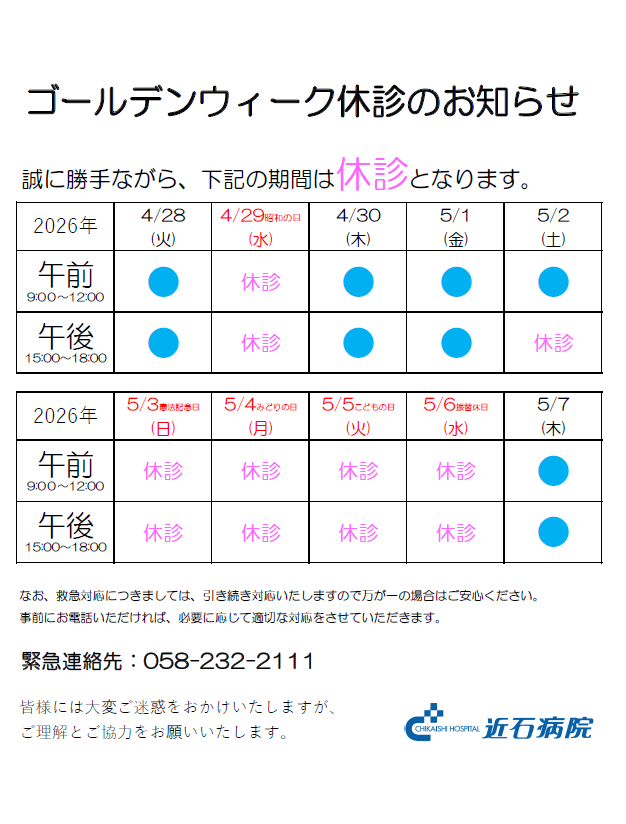 ゴールデンウィークのお知らせ