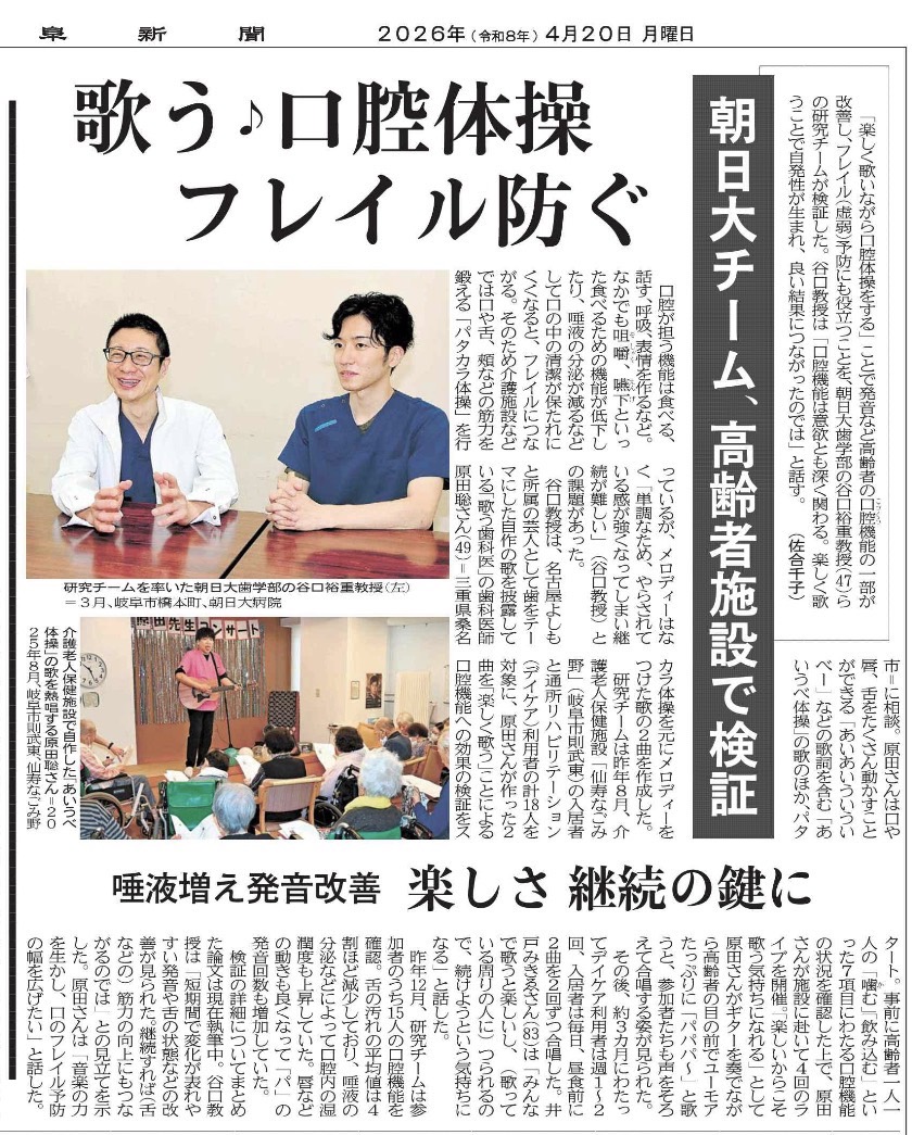 岐阜新聞に当院の非常勤歯科医師が関わる取り組みが掲載されました。